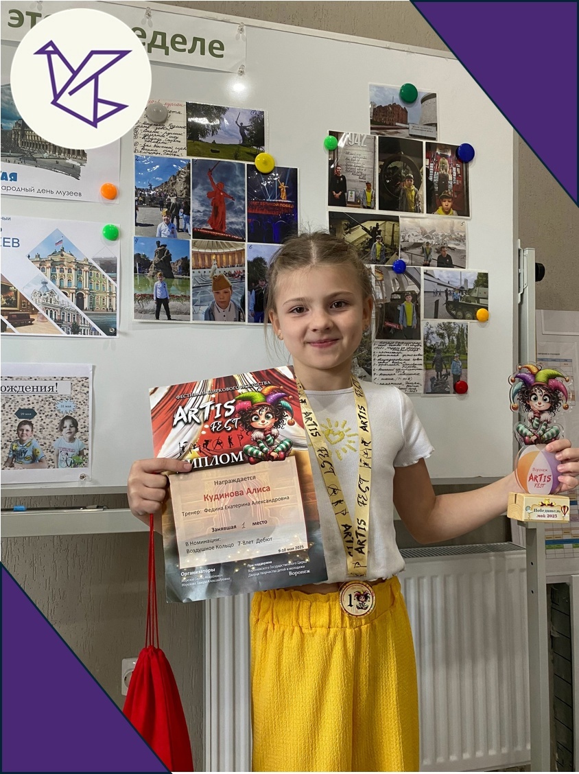 Поздравляем нашу ученицу группы продлённого дня Кудинову Алису за место I-вое на фестивале воздушной гимнастики и циркового искусства Artis- Fest.